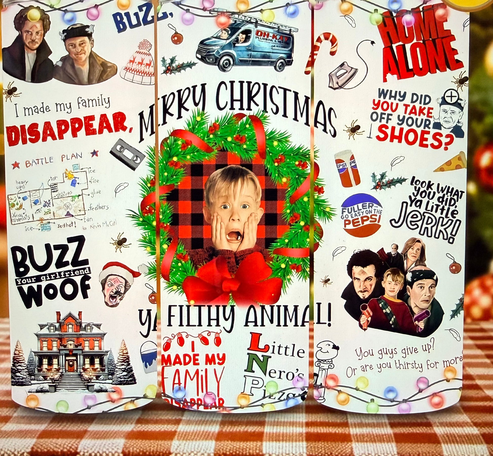 Enjoy your favorite holiday movie moments with the Home Alone Tumbler. This 20oz double-wall insulated cup keeps beverages hot or cold for hours, perfect for cozy winter sipping. Featuring a humorous design inspired by the classic Christmas film, it’s an ideal companion for festive gatherings or everyday use during the holiday season. Durable and stylish, this tumbler combines practicality with a playful nod to a beloved movie.